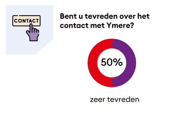 In het algemeen is de helft (50%) van de deelnemers uit Almere (zeer) tevreden over het contact met Ymere.