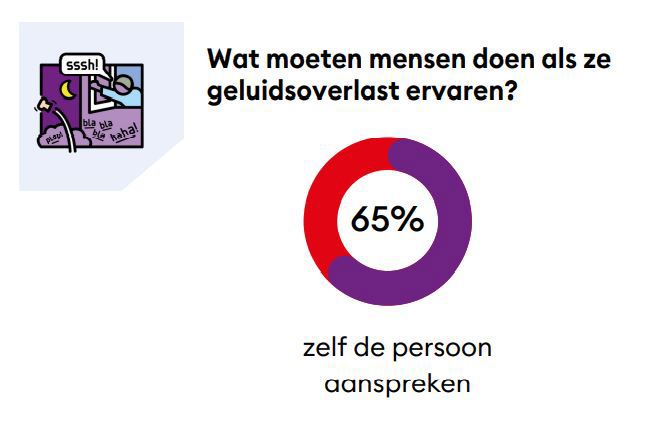 Twee derde (65%) vindt dat als mensen last hebben van geluids(overlast), ze als eerste zelf de persoon moeten aanspreken.