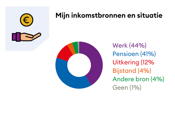 (Ruim) vier op de tien deelnemers heeft inkomsten uit werk (44%) of is met pensioen (41%).