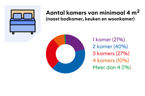 Bijna drie op de tien (27%) deelnemers heeft drie kamers van minimaal 4m² in diens woning en één op de vijf (21%) heeft een kamer van minimaal 4m².