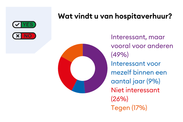 De helft (49%) van de deelnemers vindt hospitaverhuur interessant, maar vooral voor anderen. Een kwart (26%) vindt hospitaverhuur niet interessant.