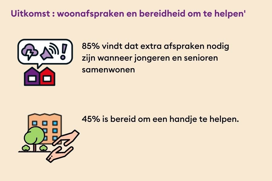 Wel moeten er dan extra afspraken over leefbaarheid gemaakt worden (85%). Denk dan vooral aan het voorkomen van geluidsoverlast. Dat kan vastgelegd worden in een huishoudelijk reglement. Soms is er niet meteen een nieuwe bewoner voor een seniorenwoning.