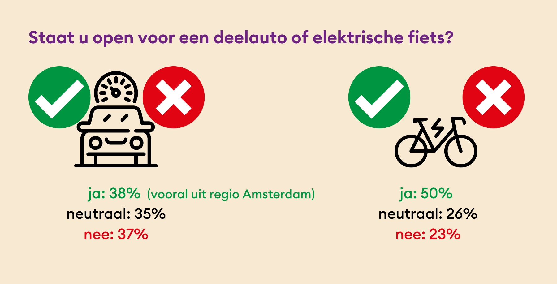 - Het gebruik van een elektrische fiets is meer in trek. Dit wil 50% van de panelleden wel proberen of gebruiken.