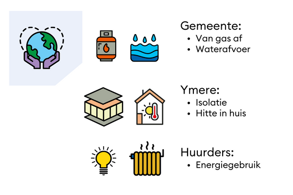 - Ymere is volgens de deelnemers vooral verantwoordelijk voor energiebesparing door isolatie en hitte in huis op zomerse dagen.