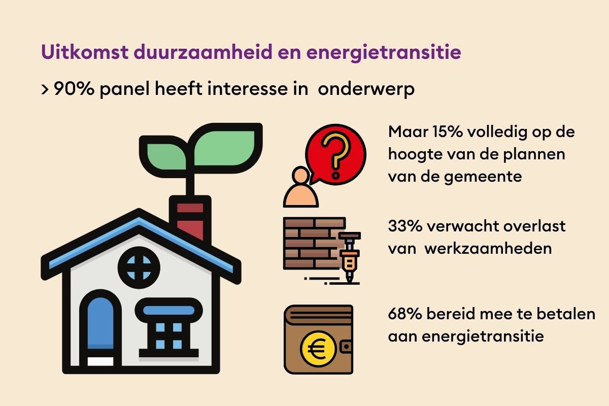 Het overgrote deel van de deelnemers heeft belangstelling voor het onderwerp duurzaamheid en energietransitie. Slechts 9% geeft aan geen interesse te hebben in het onderwerp.