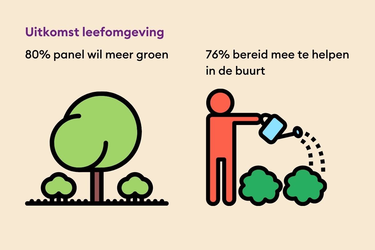 Wat draagt bij aan een fijne leefomgeving volgens ons panel? Meer groen! Zo vindt 80% openbaar groen zoals parken en geveltuinen zeer belangrijk.