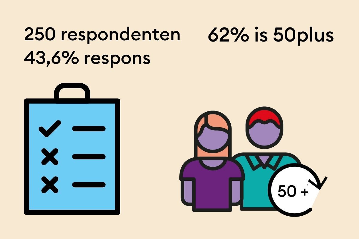 - 62% van de respondenten is 50+