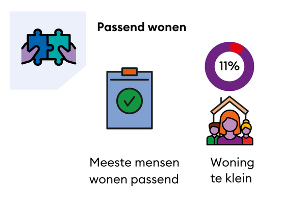 Ruim de helft van de huurders vindt hun woning niet te groot en niet te klein. Twee van de tien vinden hun woning aan de kleine kant en een van de tien aan de grote kant, maar nog wel passend. De grote meerderheid vindt dus dat ze passend wonen wat betreft de grootte van hun woning.