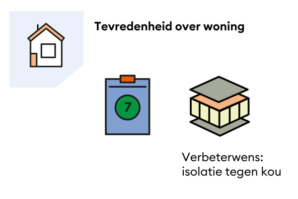 Onze huurders geven hun woning gemiddeld een 7,0. De meeste huurders zijn vooral blij met de grootte en de indeling van hun woning. Ze zijn vaak minder blij met het onderhoud en de gehorigheid van hun woning. Als huurders mogen kiezen wat wij als eerste aan hun woning moet verbeteren is dan ook geluidsisolatie en isolatie tegen kou.