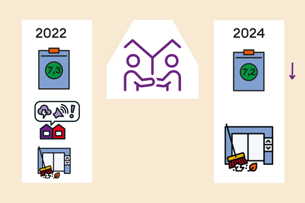 De meeste huurders zijn tevreden over hun woonomgeving. Meer dan de helft geeft hun buurt een 8 of hoger. Toch is er ook ruimte voor verbetering: één op de zeven huurders geeft een onvoldoende. Overlast speelt hierin een belangrijke rol. Vooral vervuiling in de buurt wordt vaak genoemd als storend. Hoewel de overlast door buren is afgenomen, is de waardering voor de aanpak van vervuiling iets gedaald ten opzichte van twee jaar geleden.
