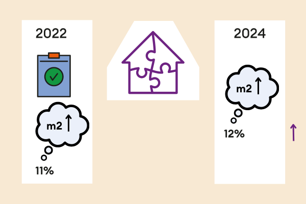 De meeste huurders vinden hun woning qua grootte passend. Toch geeft ongeveer 12% aan dat hun woning eigenlijk te klein is. De helft van de huurders staat open voor een verhuizing, bijvoorbeeld naar een grotere, mooiere of gelijkvloerse woning. Maar slechts 7% heeft een concrete verhuiswens. Tegelijkertijd groeit de groep die wel zou willen verhuizen, maar geen mogelijkheden ziet – van 17% vier jaar geleden naar 19% nu. Ook zien we dat steeds meer mensen realistischer worden in hun wensen: de belangstelling voor kleinere woningen (onder de 70 m²) neemt toe.