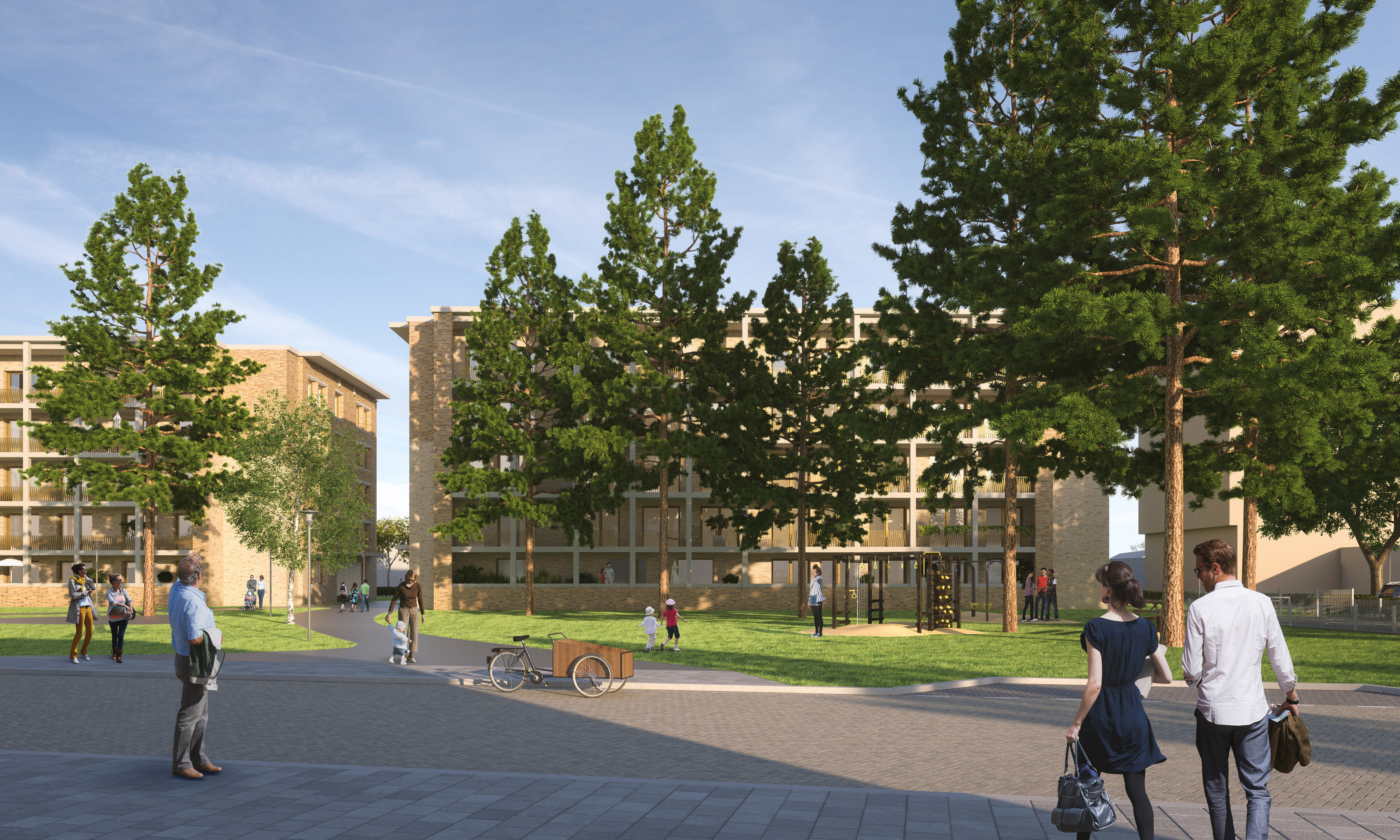 De nieuwbouw gaat er anders uitzien dan de gesloopte flat. Er komen drie nieuwe woongebouwen: één boven het winkelcentrum, twee in een groene parkomgeving. De nieuwe gebouwen achter de winkels worden een stuk lager (17 meter) dan de oude Kostverlorenflat, die 25 meter hoog was. Het gebouw boven de winkels wordt ongeveer 3 meter lager dan de oude flat.