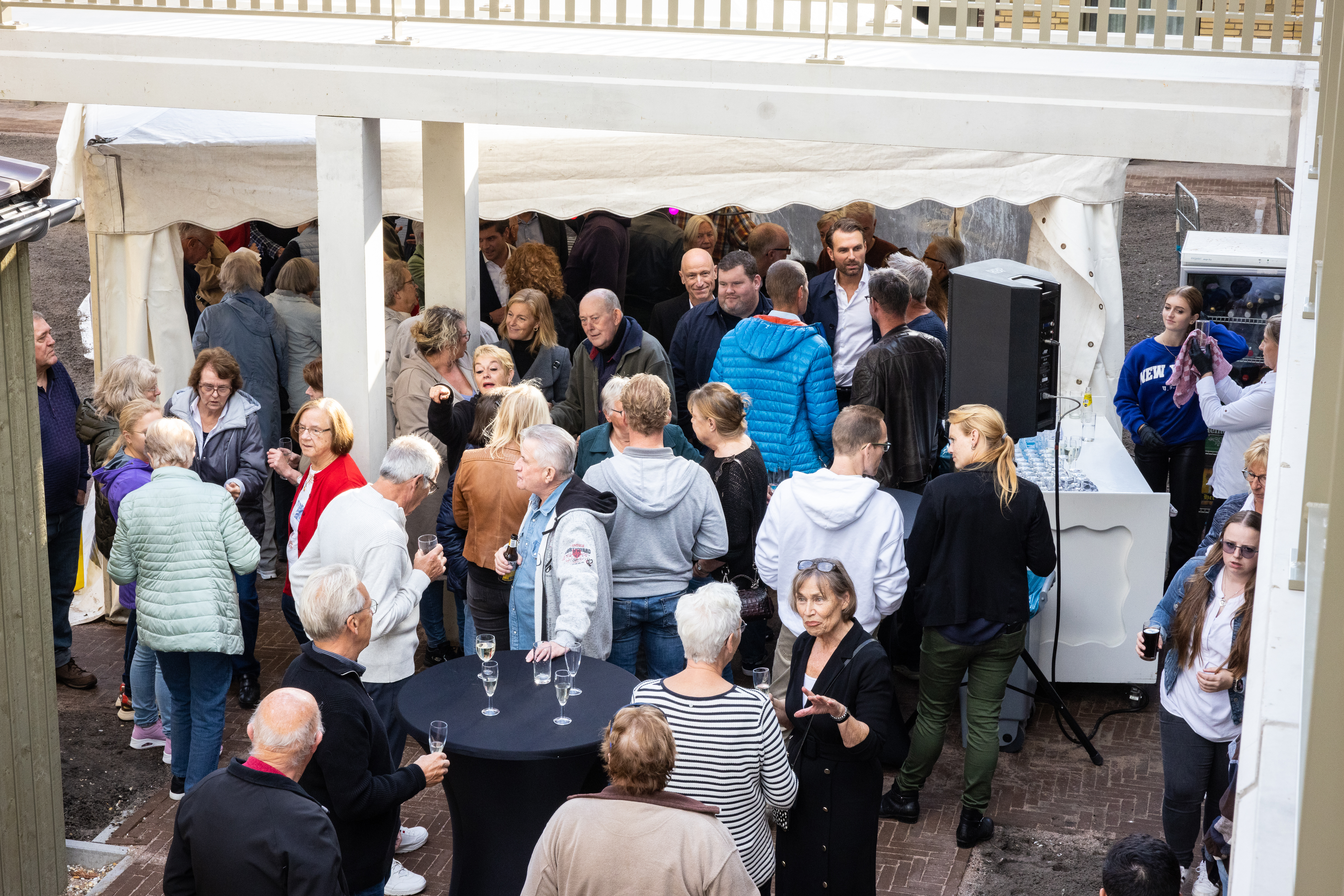 Terwijl de muziek schalt over het binnenterrein wordt er, met een bitterbal in de hand, druk bijgepraat door bewoners. Vooral met elkaar, maar er wordt ook gesproken met de mannen van Thunnissen, de bouwer van het complex, en Marjolein van Eig, de architect. Er worden verhalen uitgewisseld en klustips. En als de eerste regendruppels beginnen te vallen, zijn de meeste bezoekers van de binnentuin binnen een paar stappen weer thuis.