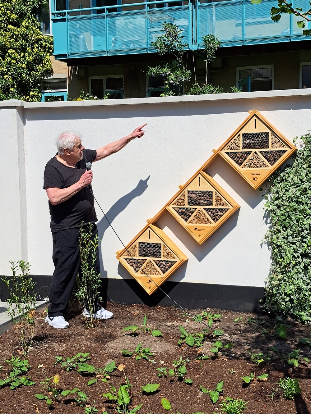 Tussen de benedenwoningen was eerst een overdekte binnenplaats. Hier is de binnentuin opnieuw aangelegd met verschillende soorten planten. Met de regentonnen en het infiltratiesysteem helpt de tuin mee aan de regenwateropvang in dit deel van de stad. Ook helpt een tuin met boompjes en struiken tegen overmatige hitte. Tijdens de feestelijke oplevering van de Roze Panden opende bewoner Martien op geheel verfrissende wijze de binnentuin. Vanaf nu kunnen hij en zijn naaste buren met de sproeier en tuinslang de plantjes bewateren tijdens de droge zomerdagen. Zo zorgen de buurtbewoners samen voor de binnentuin. En er was meer. Het timmerteam heeft met ziel en zaligheid een thuis geboden voor bijen en andere insecten in de vorm van een bijenhotel. En de katten uit de buurt kunnen nu ook op verkenning door de plaatsing van een kattentrap.