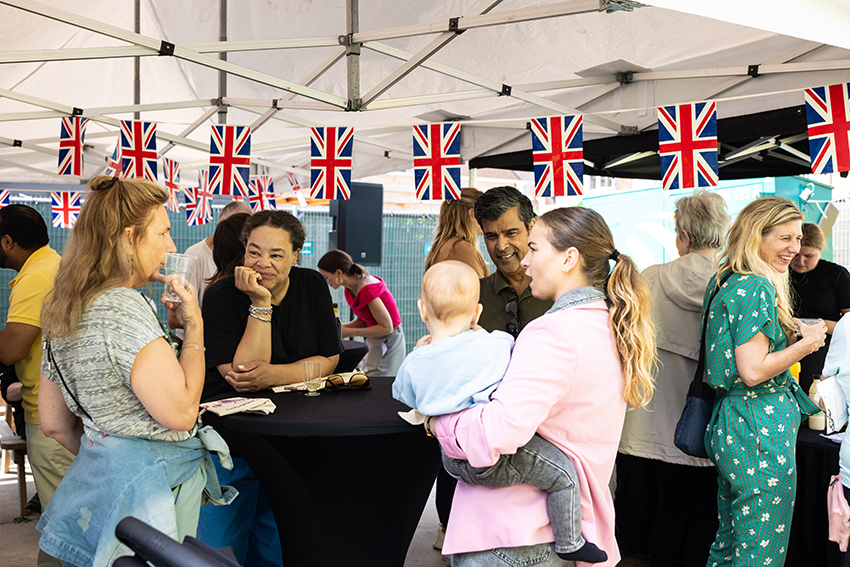 Zijn buren Javier Sanchez en Ritish Hanoewant maakten ook een gaatje voor het buurtfestijn, waar het aan Engelse hapjes als fish and chips en scones niet ontbrak. “Deze ontmoeting hier is een goed teken vanuit Ymere zelf. Ik heb op veel plekken gewoond maar nog nooit was er zo’n bijeenkomst, met wat gemeenschapsgevoel. Het betekent voor mij dat we samen iets moois willen maken van deze buurt”, vertelt Hanoewant. “En die rode ‘library’ die hier voor ons komt te hangen, die is niet te missen!”