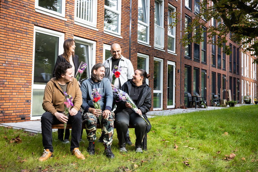 Bewoner Kevin besluit zijn verhaal ook met de groep te delen: “Ik kom uit Hoofddorp maar heb eerder ook al in Nieuw-Vennep gewoond. De buurt ken ik dus als mijn broekzak, dat begrijp je. Het is fijn wonen in de Veldbloem, een rustig plekje. Tegelijkertijd: als ik buren tegenkom zwaaien we naar elkaar en zeggen ze me vriendelijk gedag. Zo’n thuis, dat is precies waar ik naar zocht.” Klaartje Molthof, directeur Portefeuillevernieuwing van Ymere: Dat we hier – op z’n zachtst gezegd – voortvarend aan de slag zijn gegaan loont. En dat maakt me enorm trots, nu we hier samen met Kevin en zijn buren een glaasje kunnen drinken.”