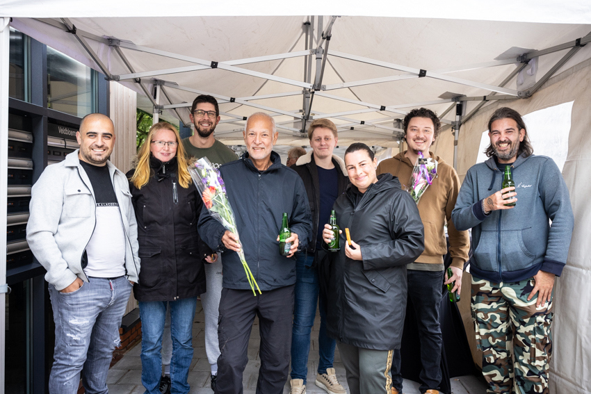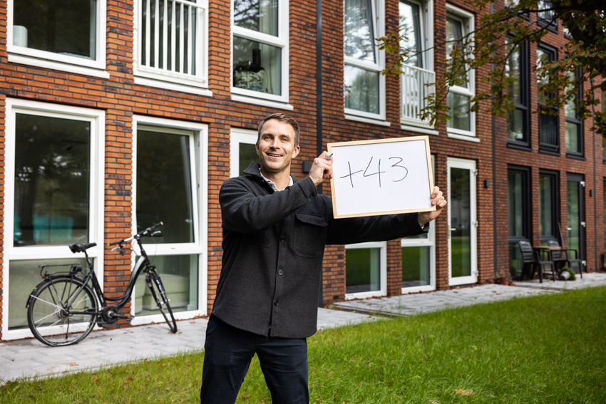 Remco Pols: “Ik ben blij dat we vandaag samen met deze leuke groep buren en de omwonenden proosten op De Veldbloem. Als er in je buurt wordt gebouwd, heb je natuurlijk ook vragen, dat snappen wij goed.” Zo ook overbuurman Glenn, die tijdens het feestje vraagt om een foto met zijn buren. “Om te laten zien aan mijn vrouw, die er niet bij kan zijn. Ik woon tegenover de Veldbloem. In het begin denk je: hoe zal dat gaan, bijvoorbeeld met de parkeerruimte? Nou, dat valt mee, er wordt zelfs gevoetbald op lege parkeerplekken. De heggen aan de tuinen worden nog geplaatst, hoor ik hier nu van de wijkbeheerder. Voor iedereen wel zo fijn.”