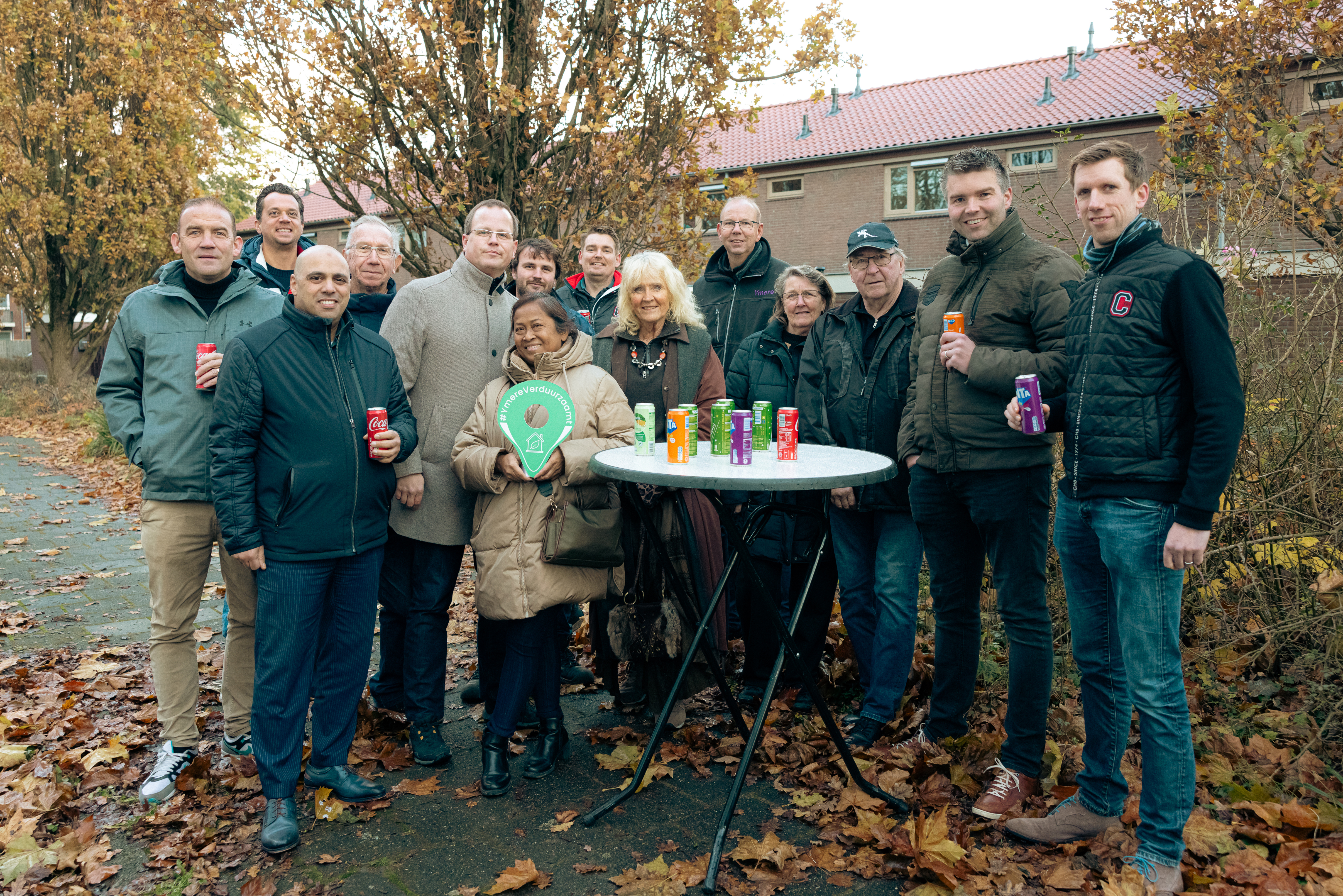 Frank organiseerde een drukbezochte bijeenkomst, om de klus samen af te sluiten met de bewonerscommissie, bewoners, Vereniging Huurders Haarlemmermeer (VHH) en het renovatieteam. De woningen van de buren staan er deze middag, ook dankzij het miezerige weer, extra glimmend bij.