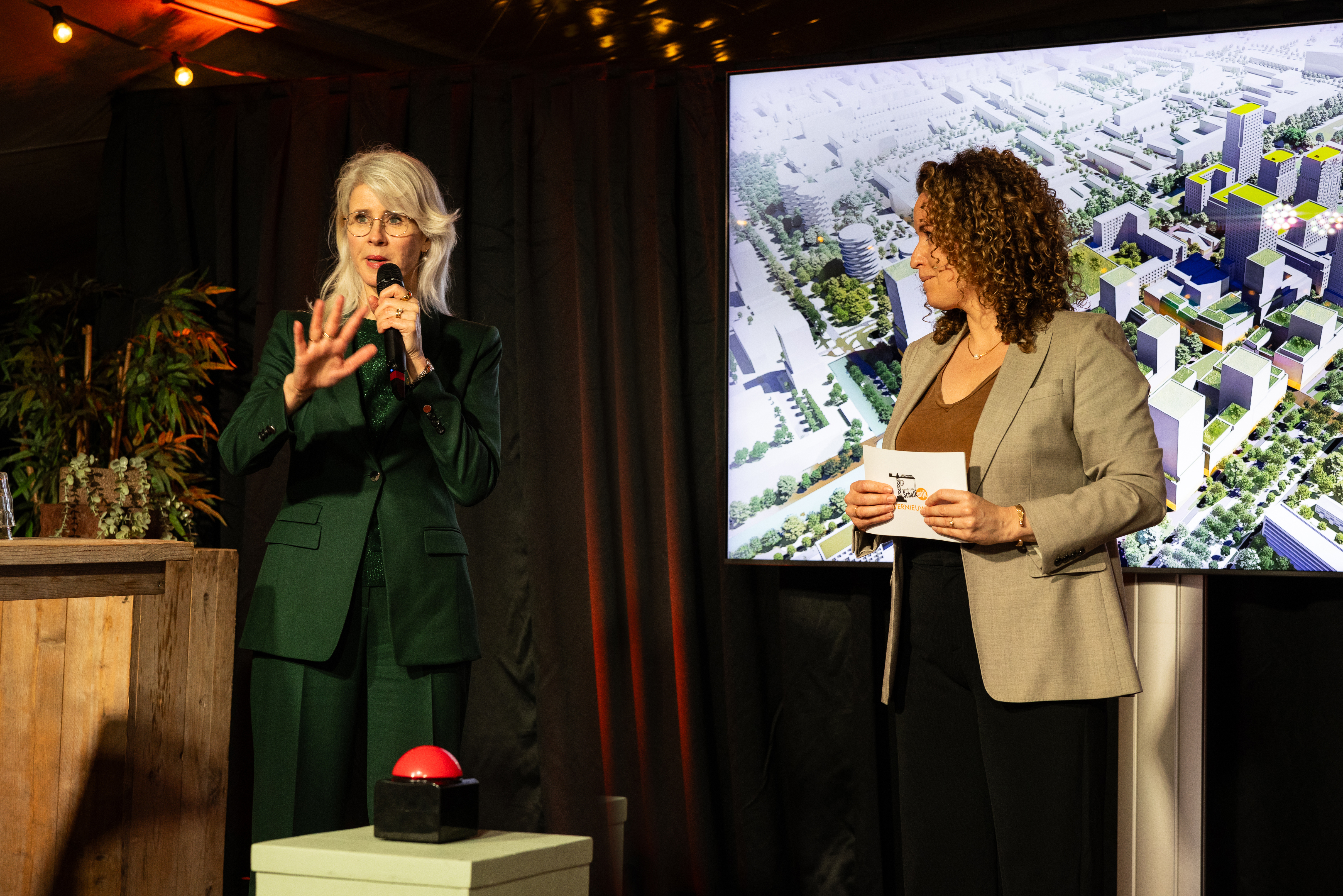 Minister Mona Keijzer had ook al wat meters gemaakt. Voor ze het publiek in de feesttent toesprak werd ze, vergezeld door een cameraploeg van tv-programma Nieuwsuur, nog rondgeleid in het ‘oude centrum’. Hier voegen de partners straks, zo snel als het licht, 1200 woningen toe.