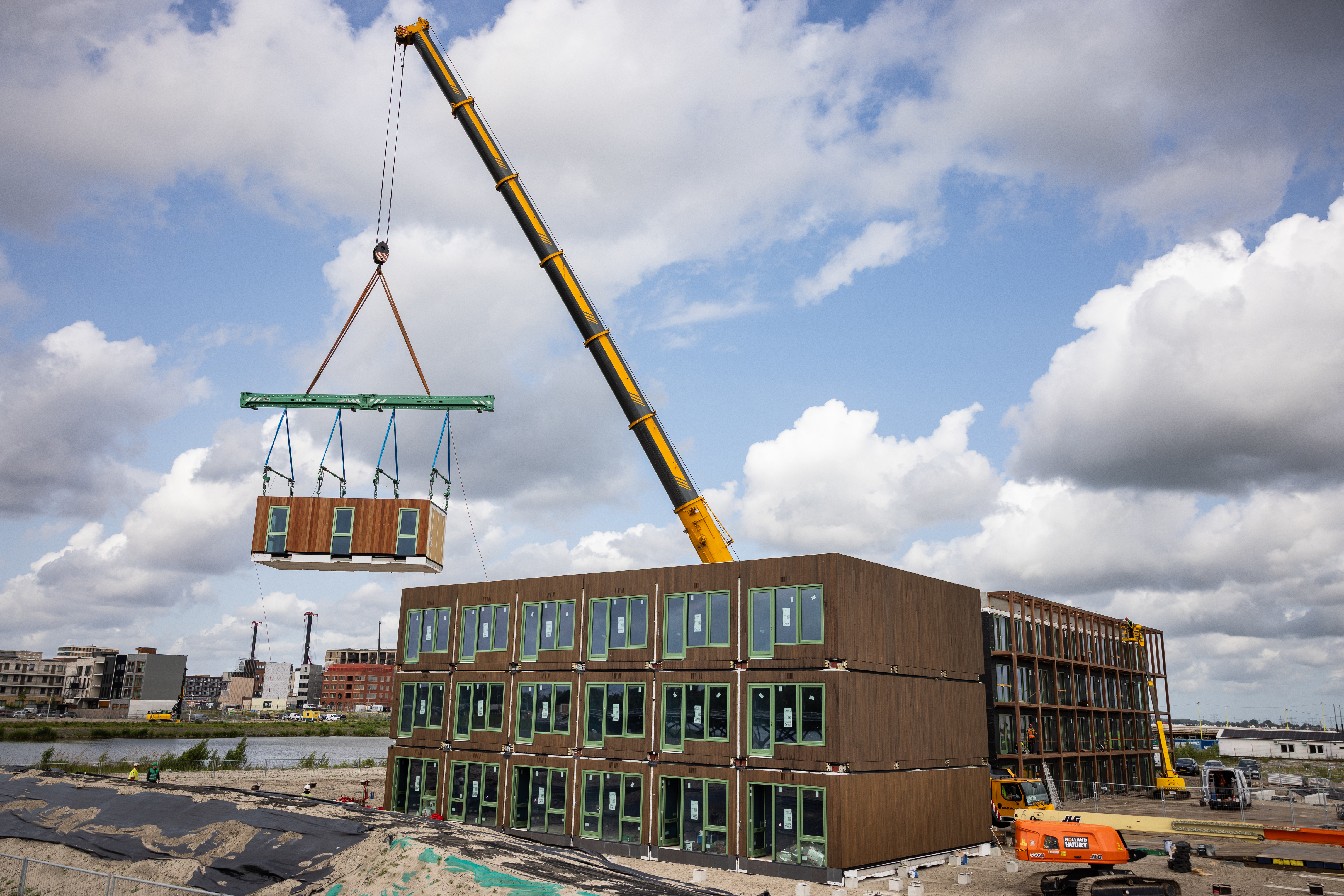 In het Makerskwartier bouwen wij, samen met woningcorporaties De Alliantie en Stadgenoot, 349 flexwoningen – de allereerste woningen op Strandeiland. Wij bouwen er 129.