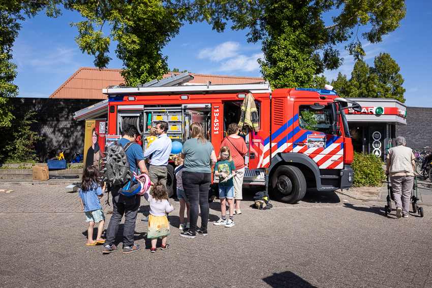 Natuurlijk waren we er zelf ook om met huurders in gesprek te gaan. Daarnaast lag er een stapeltje formulieren waarop bewoners hun gedachten en suggesties over hun woning en buurt konden doorgeven. Ook waren de politie en brandweer – inclusief grote brandweerauto, een echte eyecatcher, zo bleek – aanwezig om bezoekers te woord te staan en hun opmerkingen te noteren.