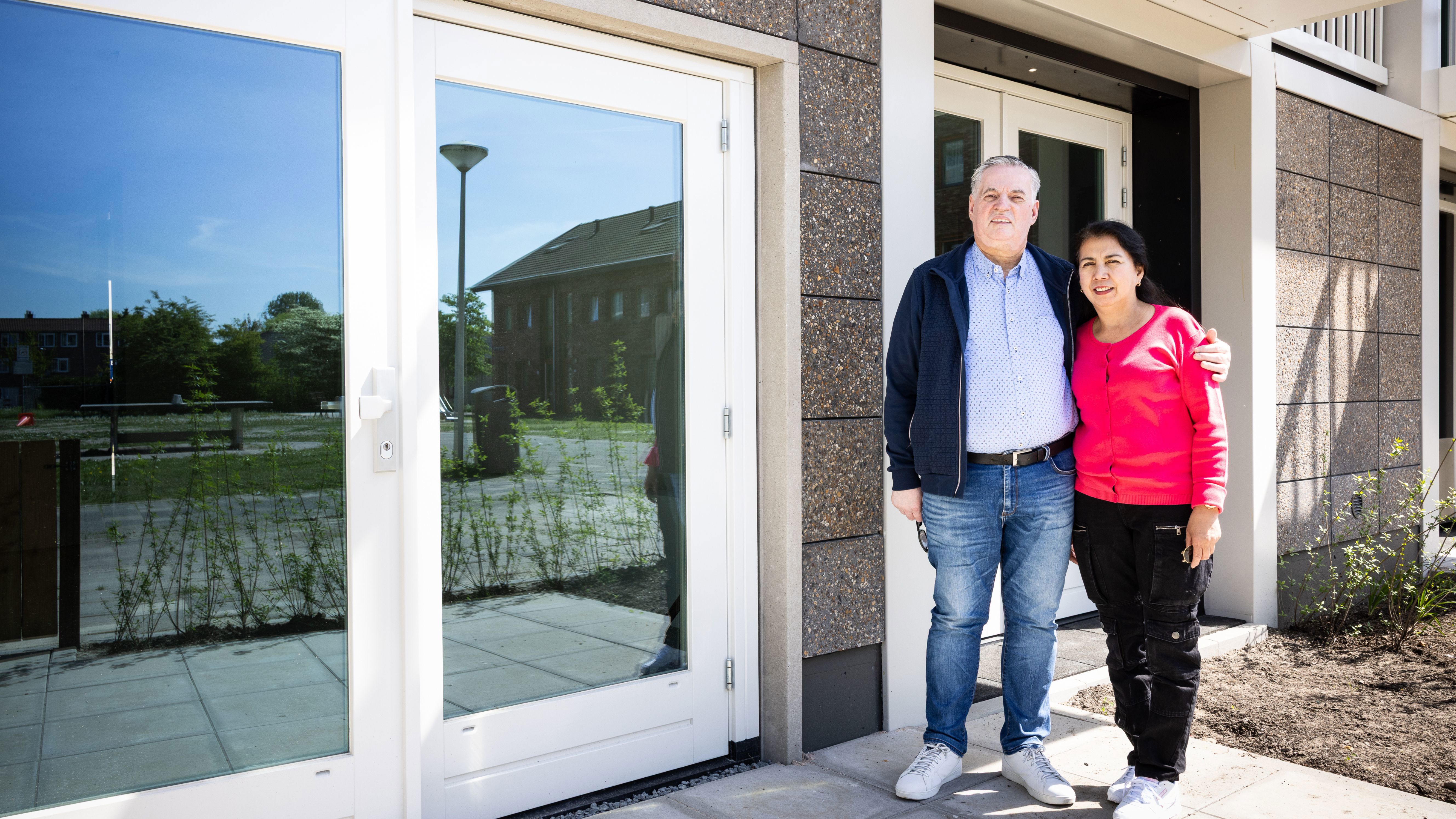 “We waren blij verrast dat we deze woning toegewezen kregen via MijnDak, dat hadden we nooit verwacht,” vertelt Jan-Willem, één van de eerste nieuwe bewoners. Trots laat hij de sleutel zien. Samen met zijn vrouw ruilt hij zijn sociale huurwoning in voor dit strak gerenoveerde appartement op de begane grond met een tuin. “Nu wonen we dichterbij de kinderen en hebben we een tuintje, dat wilden we heel graag!” Samen lopen ze naar buiten om een kijkje te nemen in de tuin.