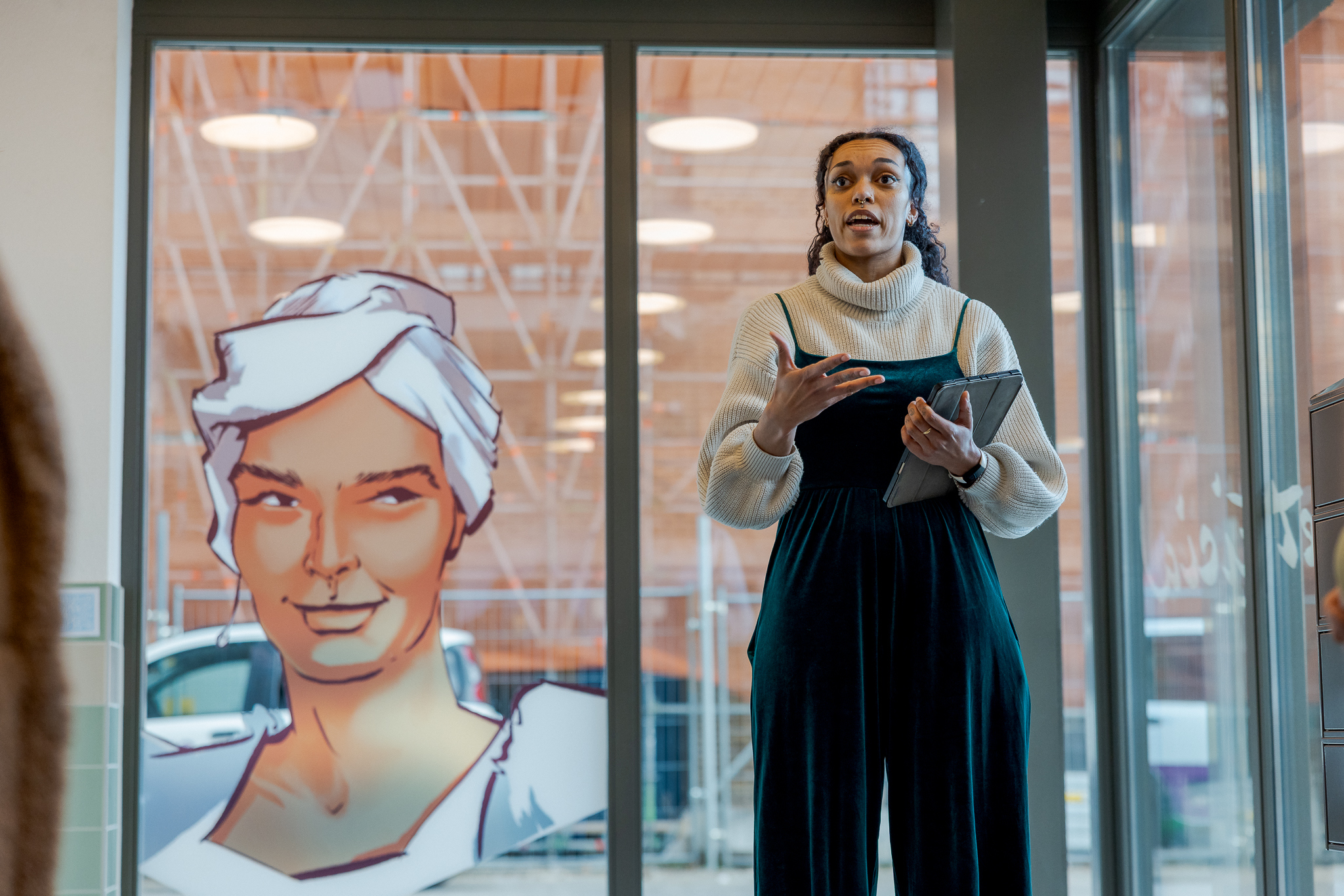 Aan de hand van het eindresultaat van het werk van D’Avellonne van Dijk vertelt ze: “De keuze voor een illustrator door Ineke, adviseur Kunst, is vanaf het begin bepalend geweest voor het soort eindresultaat. Volgens ons hebben we goed samengewerkt. Het karakter van Virginia, opstandig, zelfverzekerd, veerkrachtig, komt duidelijk naar voren in de afbeelding. Wij vinden het concept van de naam van het gebouw De Virginia én voor de benaming van de Virginiastraat van historische waarde en een grote stap in de verdere ontwikkeling van de geschiedenis van de persoon Virginia Demetricia. Hiervoor zijn wij de organisatoren van Ymere dan ook erg dankbaar.