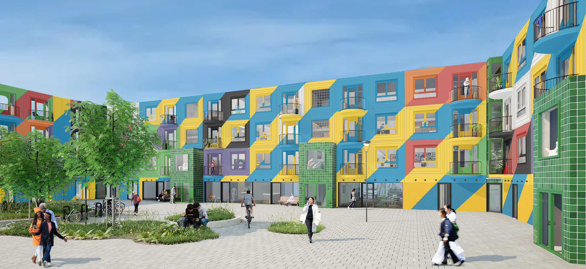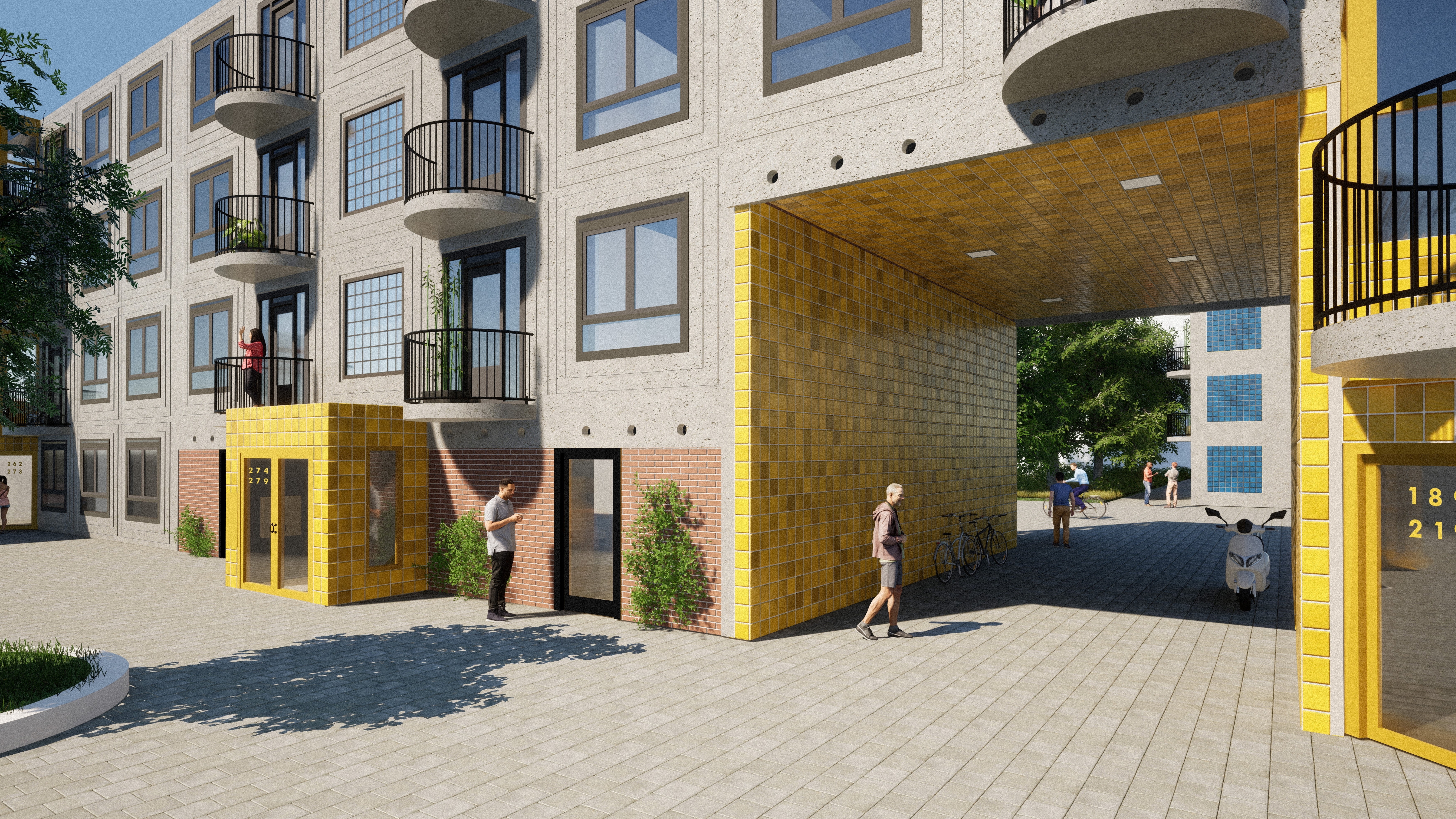 - Toevoegen van één of twee extra verdiepingen met 80 tot 90 extra woningen op de bestaande gebouwen