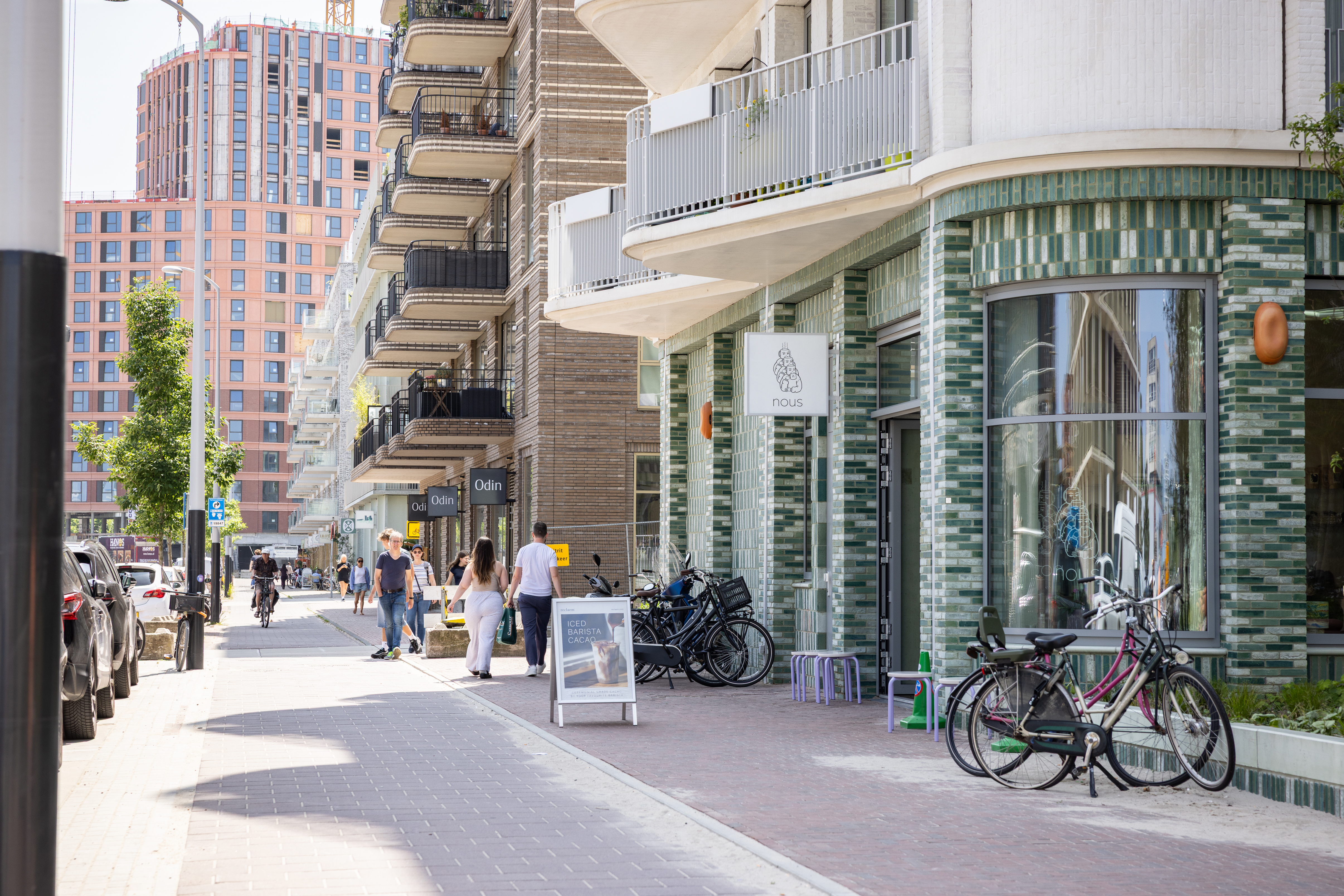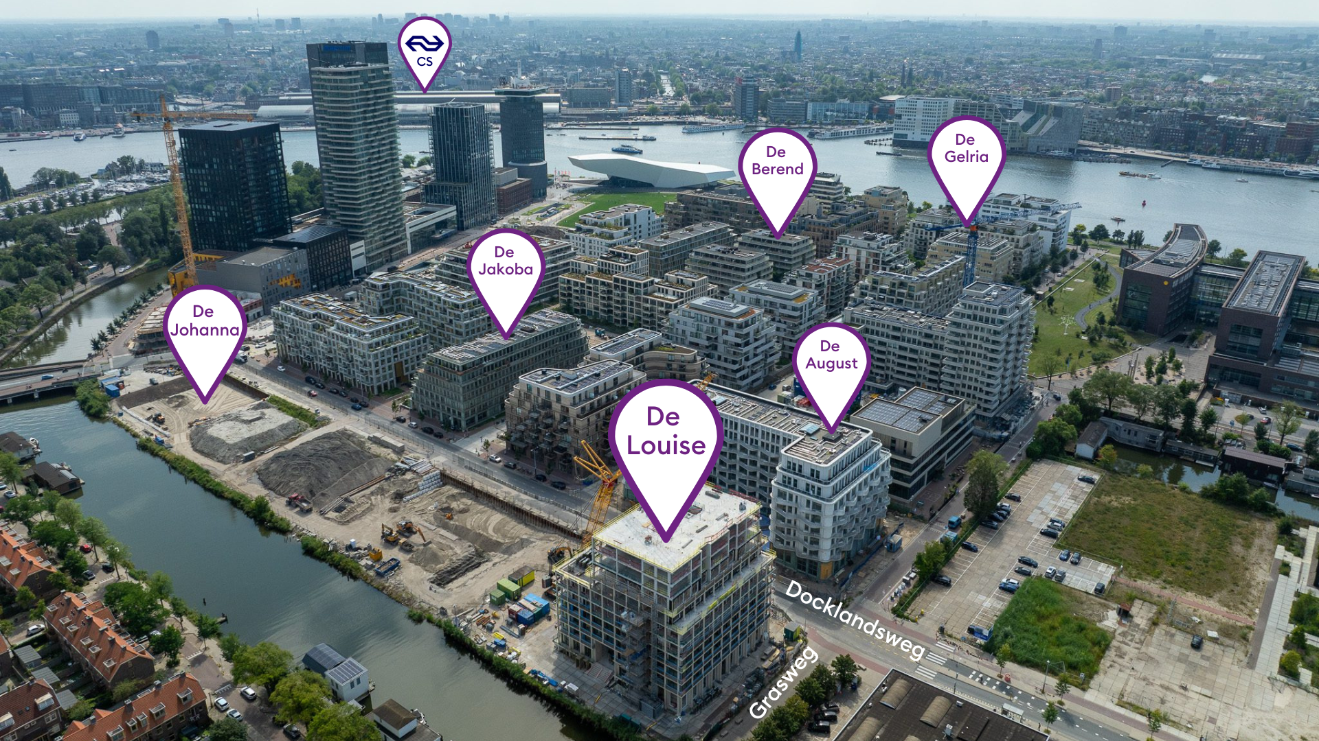 Nicole woont op de vijfde etage van De August: “Het uitzicht is geweldig, ik verheug me erop om in de zomer in de ochtendzon op mijn balkon te zitten.” Ze omschrijft zichzelf als happy huurder en is blij met haar eigen woning, het gebouw en de locatie: “Ik heb een ruime, heerlijke woning, het gebouw is apart en speels en ik ken al veel mensen in de buurt. Ik zou nergens anders willen wonen in Amsterdam, dat meen ik echt.”