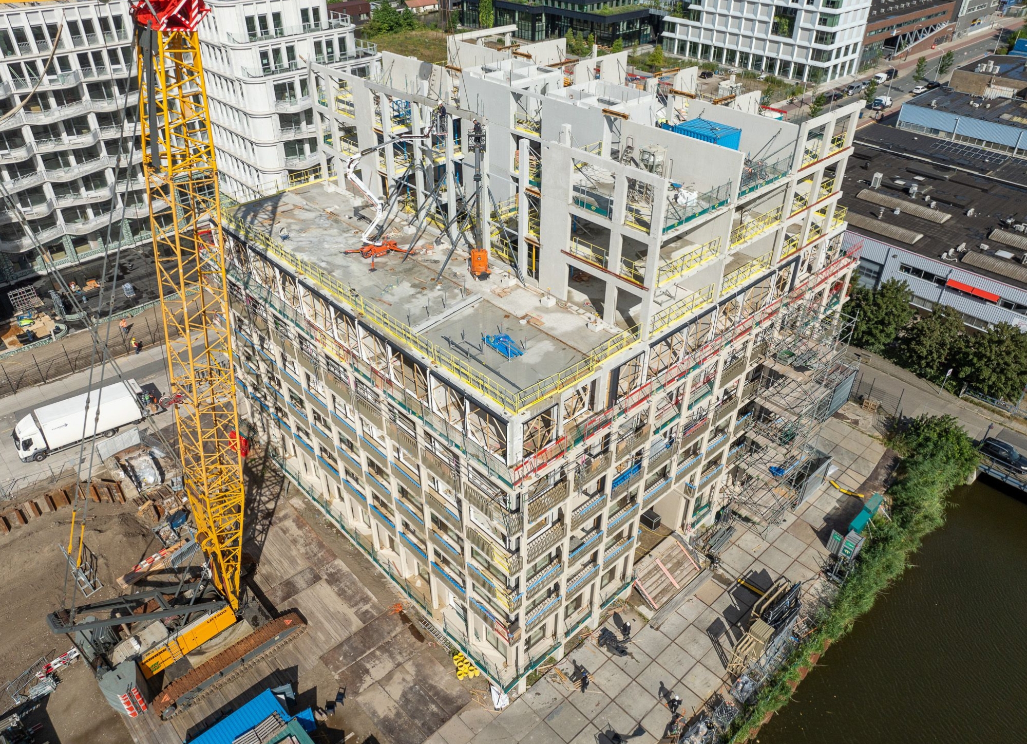In dit gebouw komen 105 sociale huurwoningen. Dit wordt een robuust gebouw met 8 verdiepingen zoals goed is te zien op de bouwlocatie.