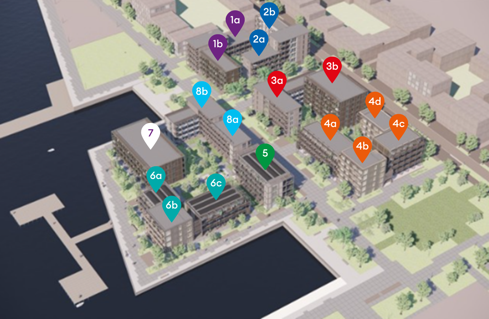 - 349 sociale huurwoningen in 8 gebouwen (inclusief een buurtkamer) van Ymere, Stadgenoot en De Alliantie